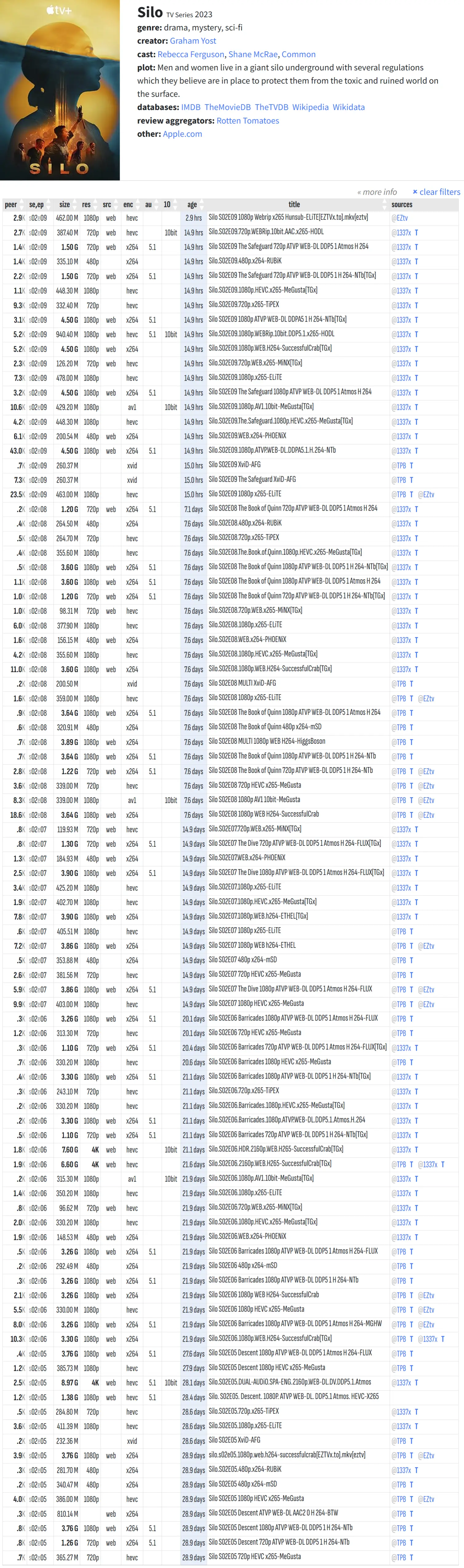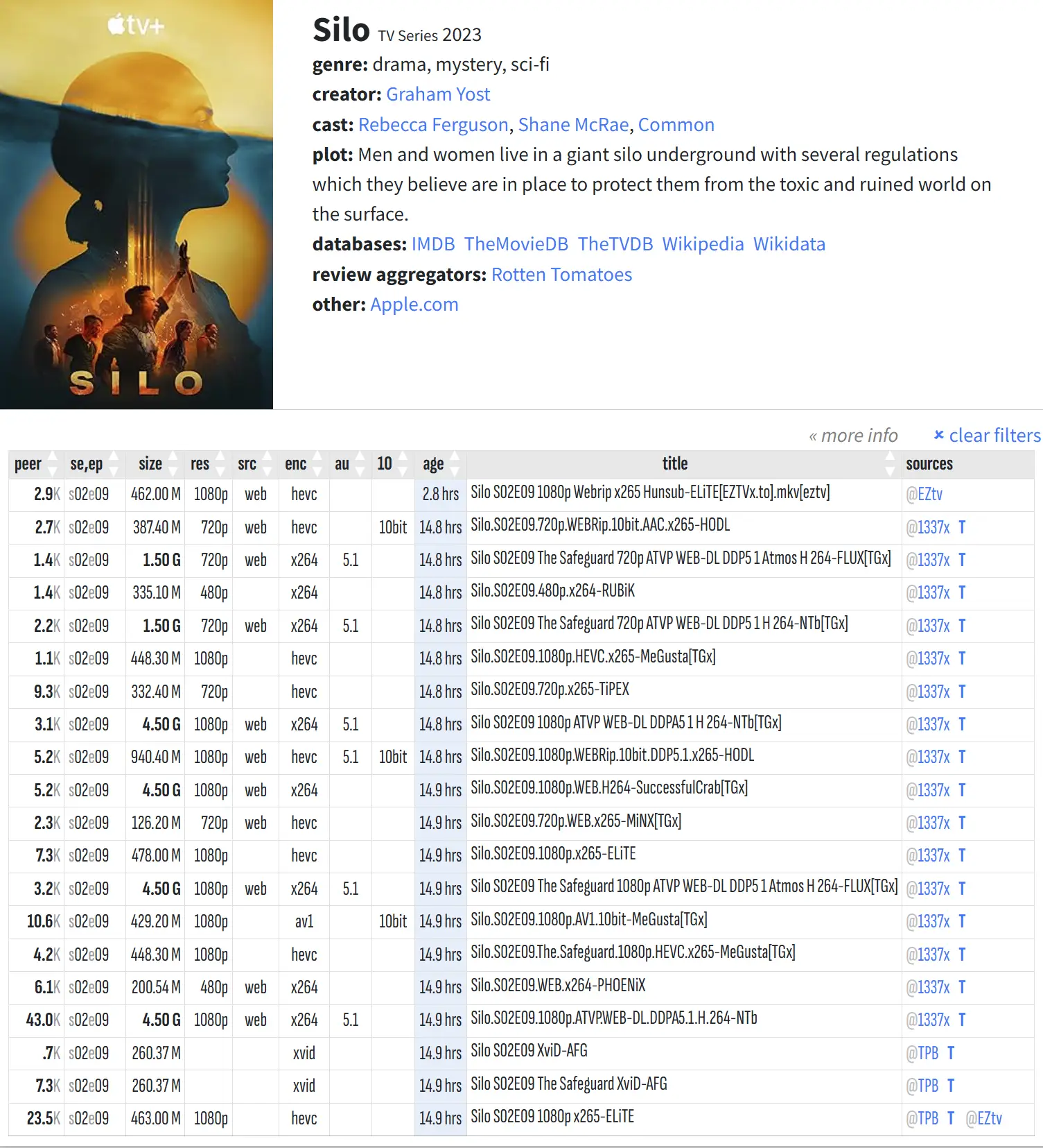 Search for older episodes, episode packs, 4K, 5.1 audio, 10-bit color. Also you can sort and filter the title parameters.